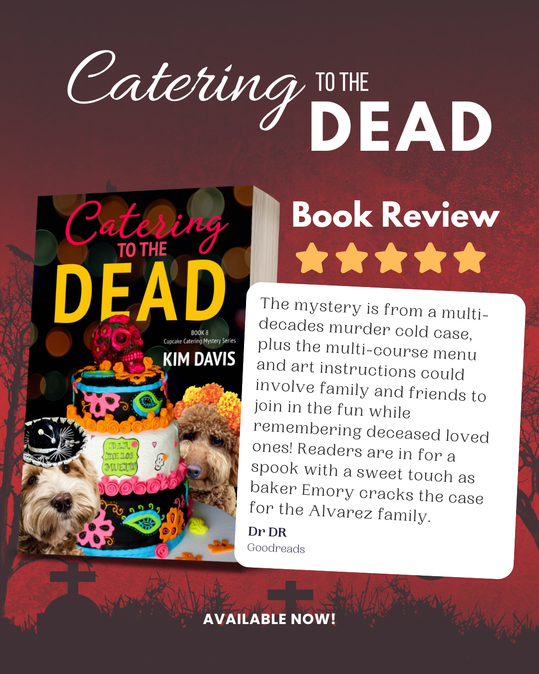When cupcake caterer Emory Martinez takes on a lavish Día de los Muertos party, she’s drawn into a twenty-year-old family tragedy. With extravagant Day of the Dead costumes, drinks flowing, desserts galore, and a celebration in full swing, not all is as joyous as it may seem. When the festivities come to a close, Emory discovers a body, and evidence points to her being the prime suspect. To clear her name, she and her octogenarian soon-to-be grandmother-in-law, Tillie, must team up with their friends to navigate a web of blackmail, betrayal, and buried secrets. Will she survive confronting a killer who will do anything to protect their freedom and hide their web of deceit, or will her catering days come to an end?